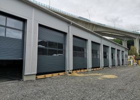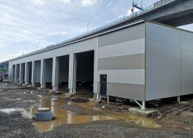 Hala pro opravy stavebních strojů v Praze Radotíně.