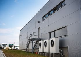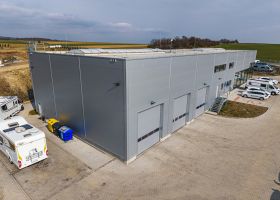 Hala s administrativní částí v obci Čisovice.