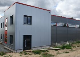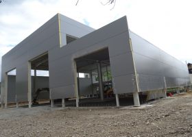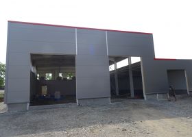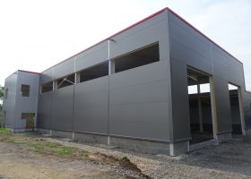 Skladová hala s přístřeškem a administrativní budovou v Troubsku u Brna.
